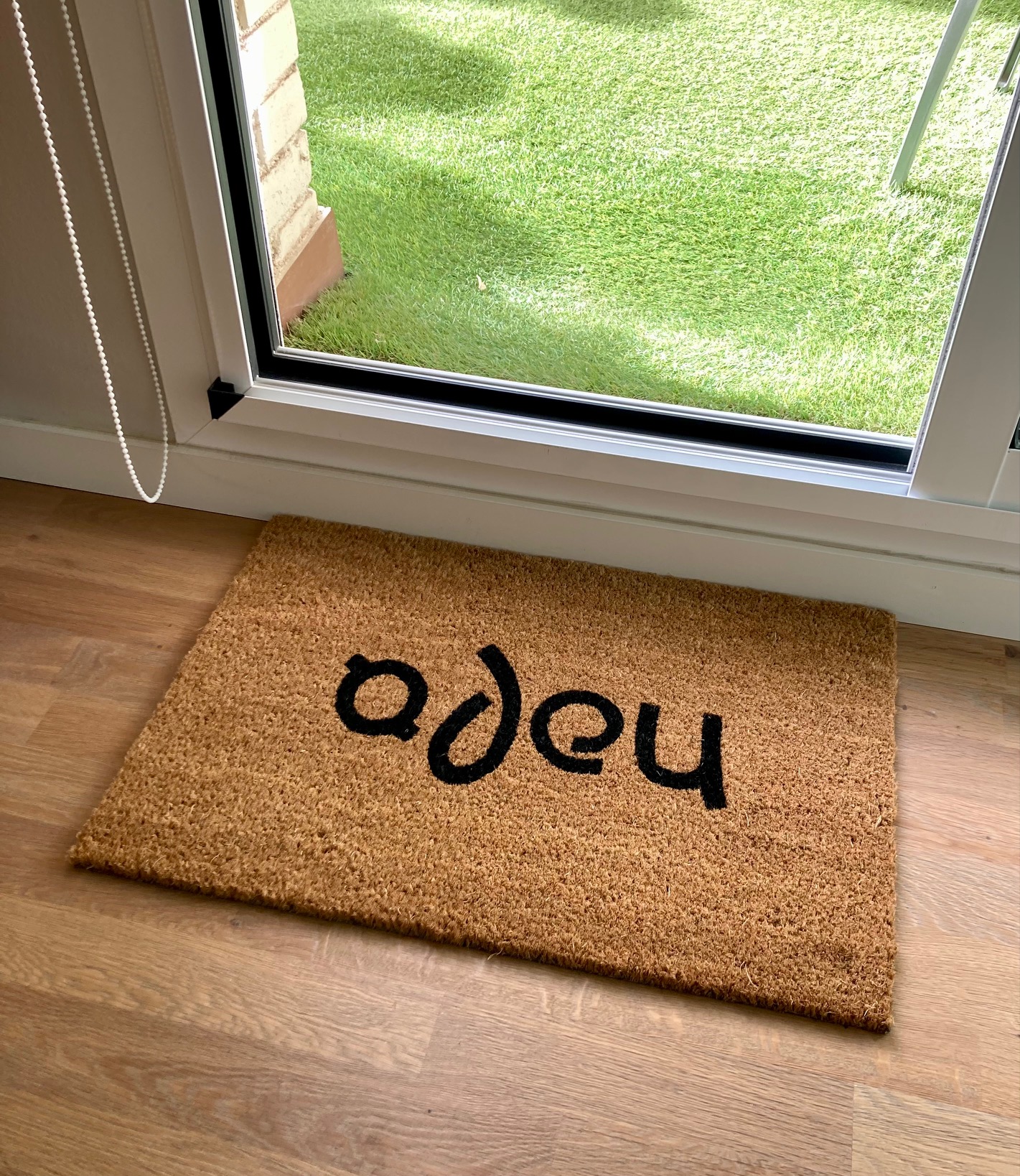 Catcatifa, catifa de fibra de coco natural reversible que et diu Hola quan arribes… i et diu Adéu quan marxes